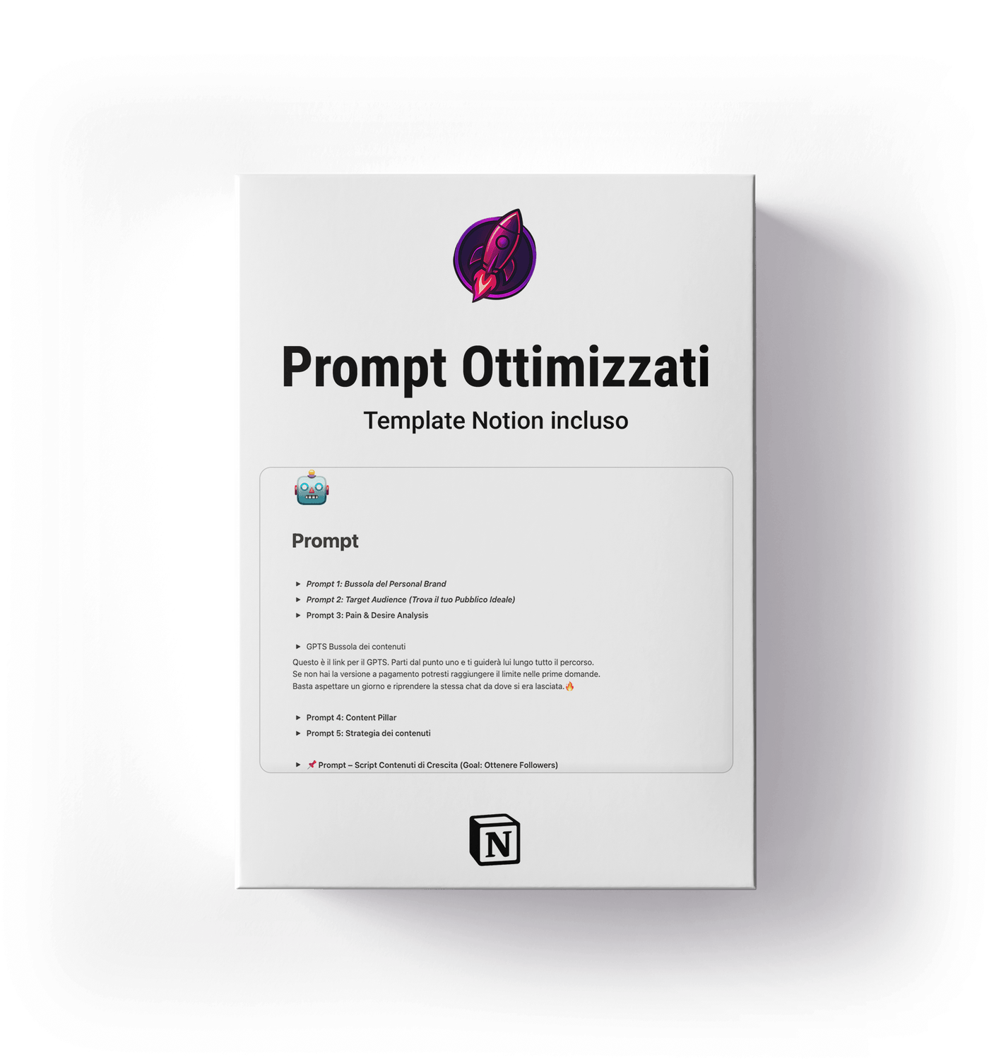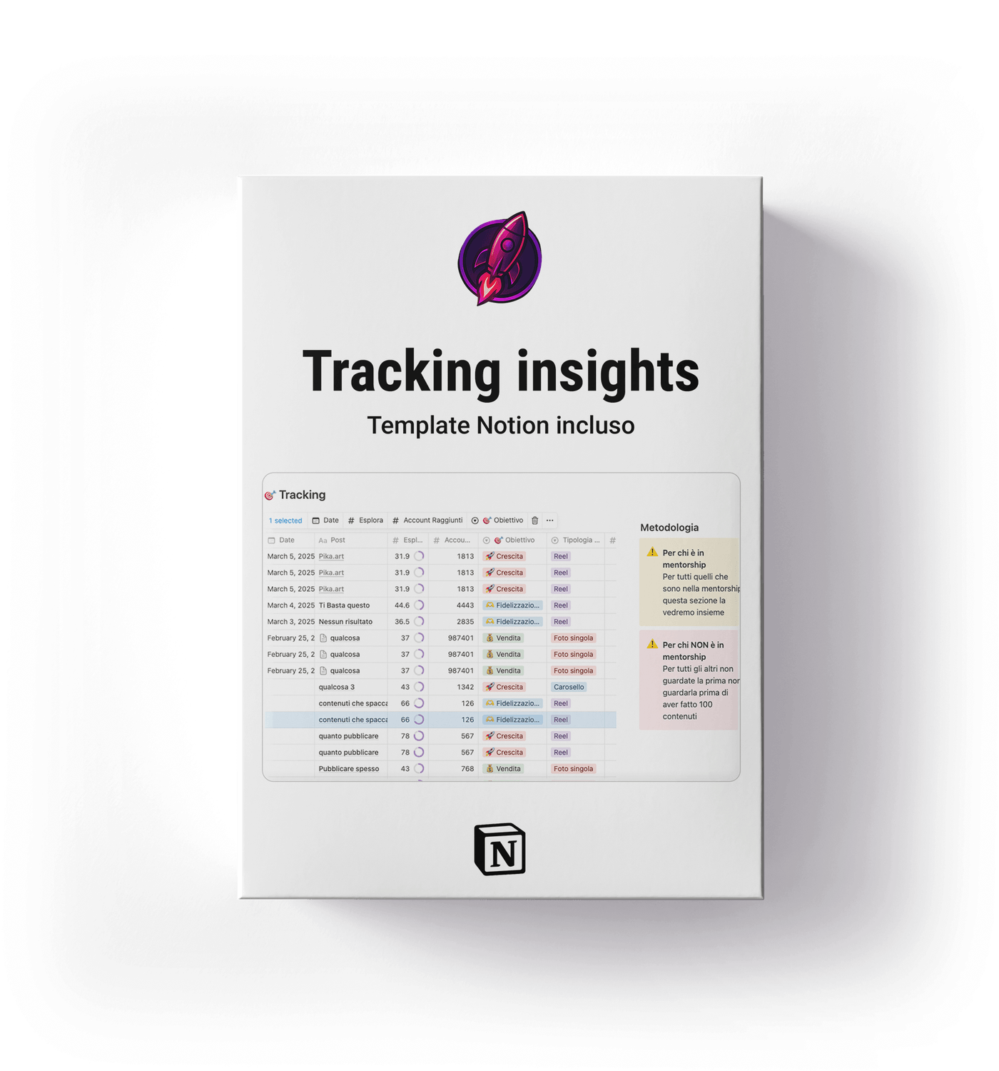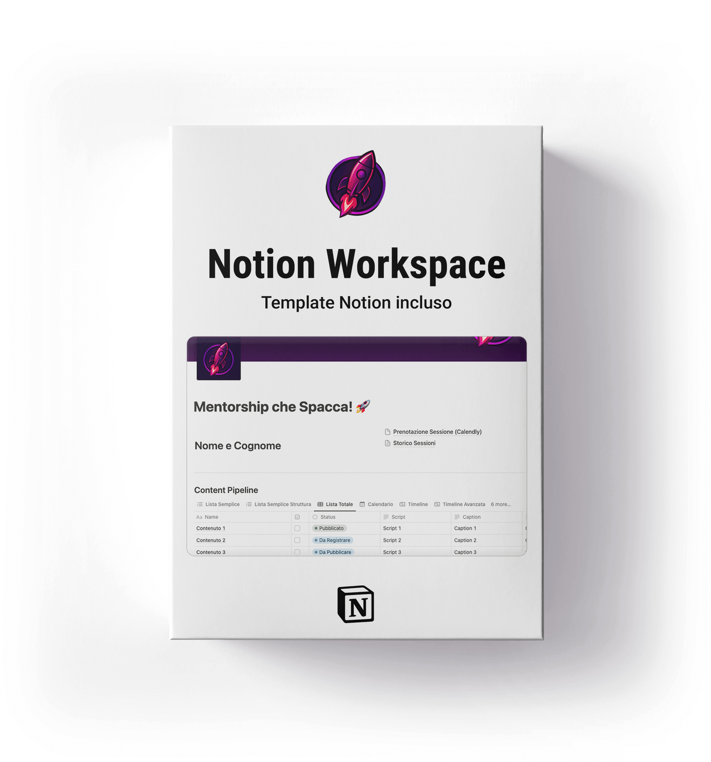 Un ecosistema completo su Notion con template pronti all’uso per centralizzare la tua produzione. Include calendari editoriali, checklist operative e spazi di brainstorming per mantenere il controllo totale sulla tua strategia di content creation.