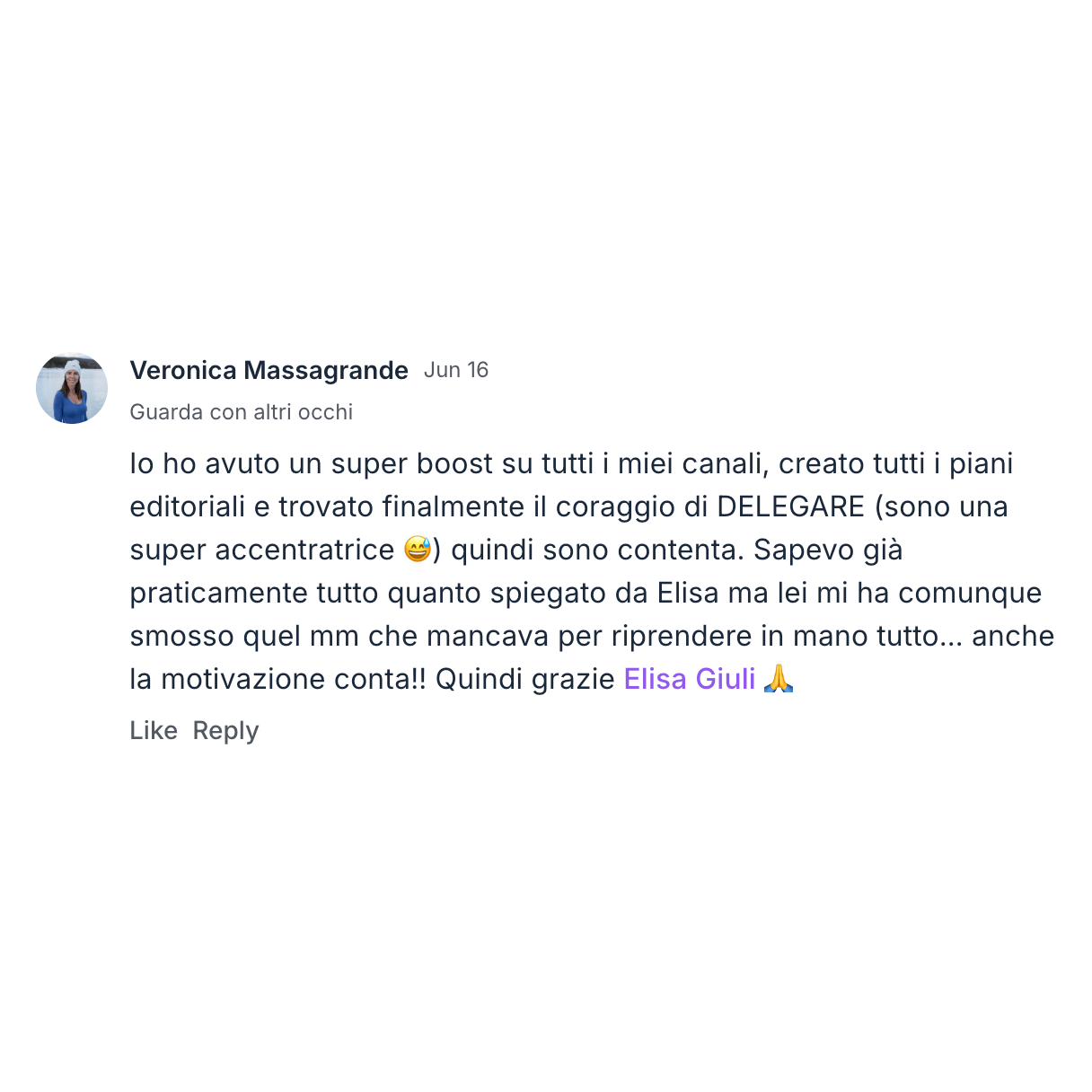 Per i piani più avanzati: call individuali con Elisa per lavorare sulla tua strategia personale, il tuo posizionamento e il tuo piano contenuti su misura.